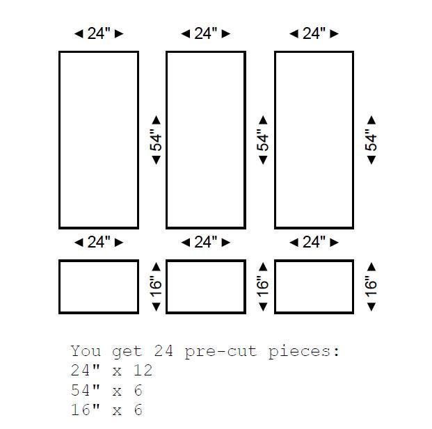 You get 24 pre-cut pieces: 24" x 12, 16" x 6, 54" x 6
